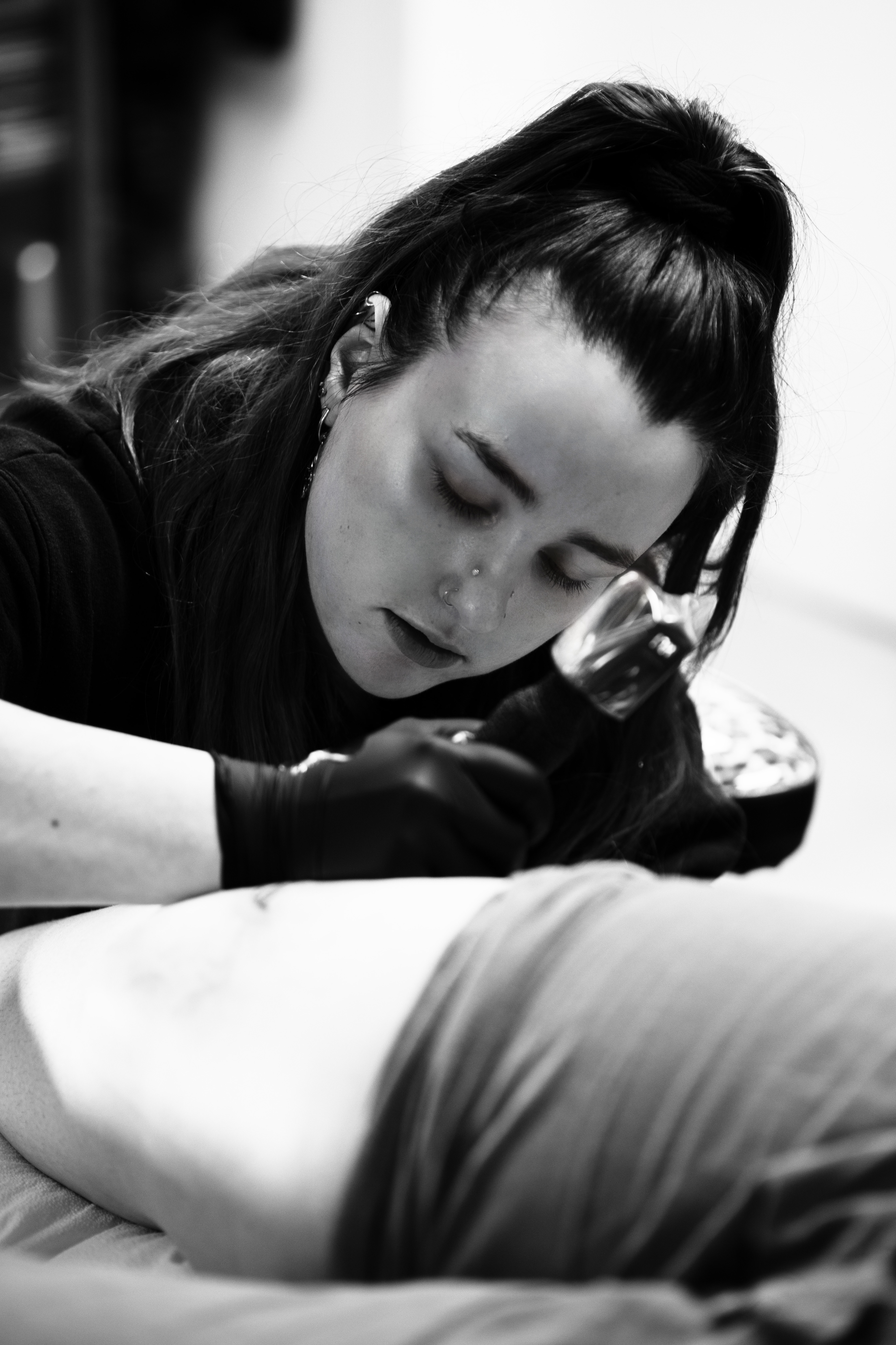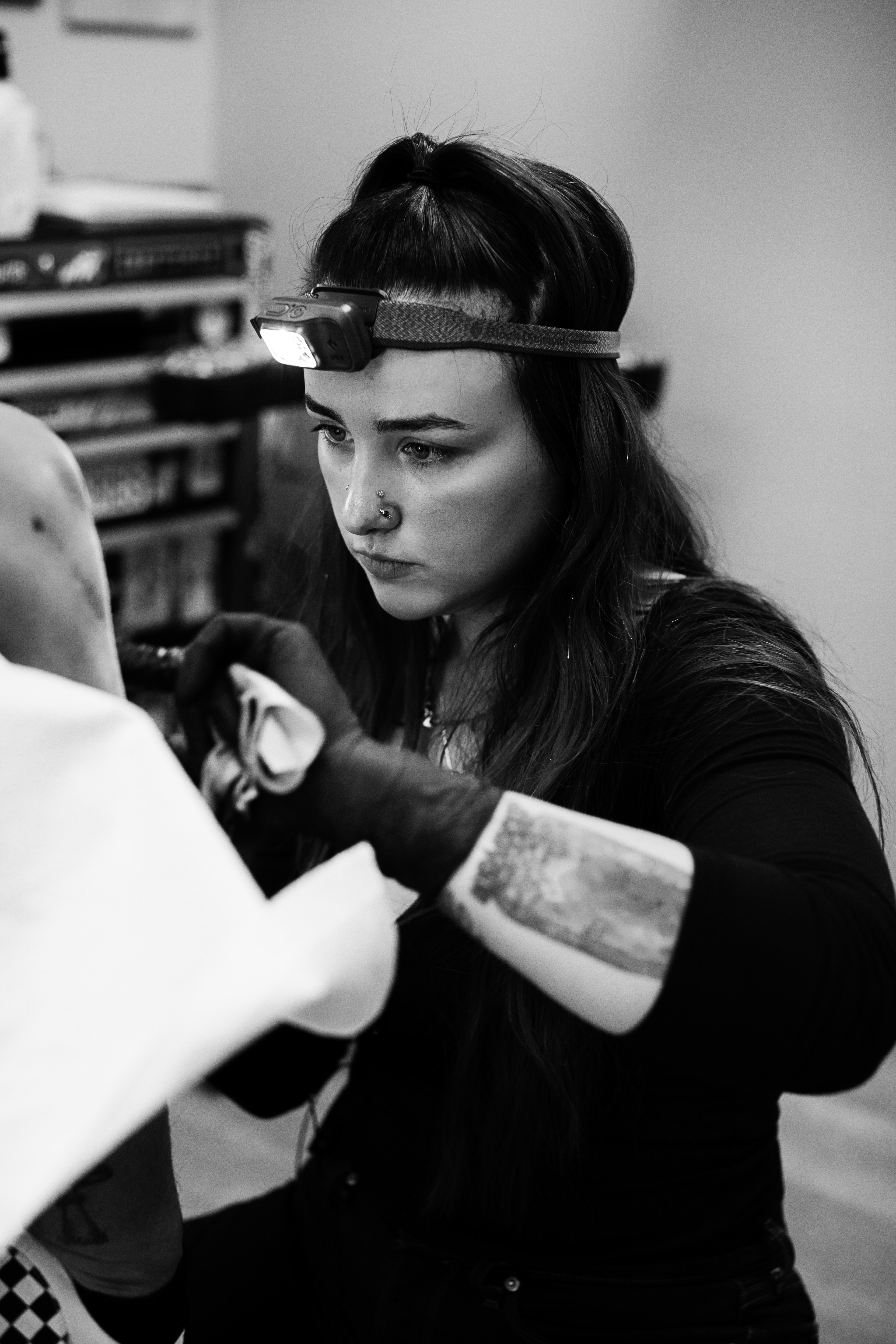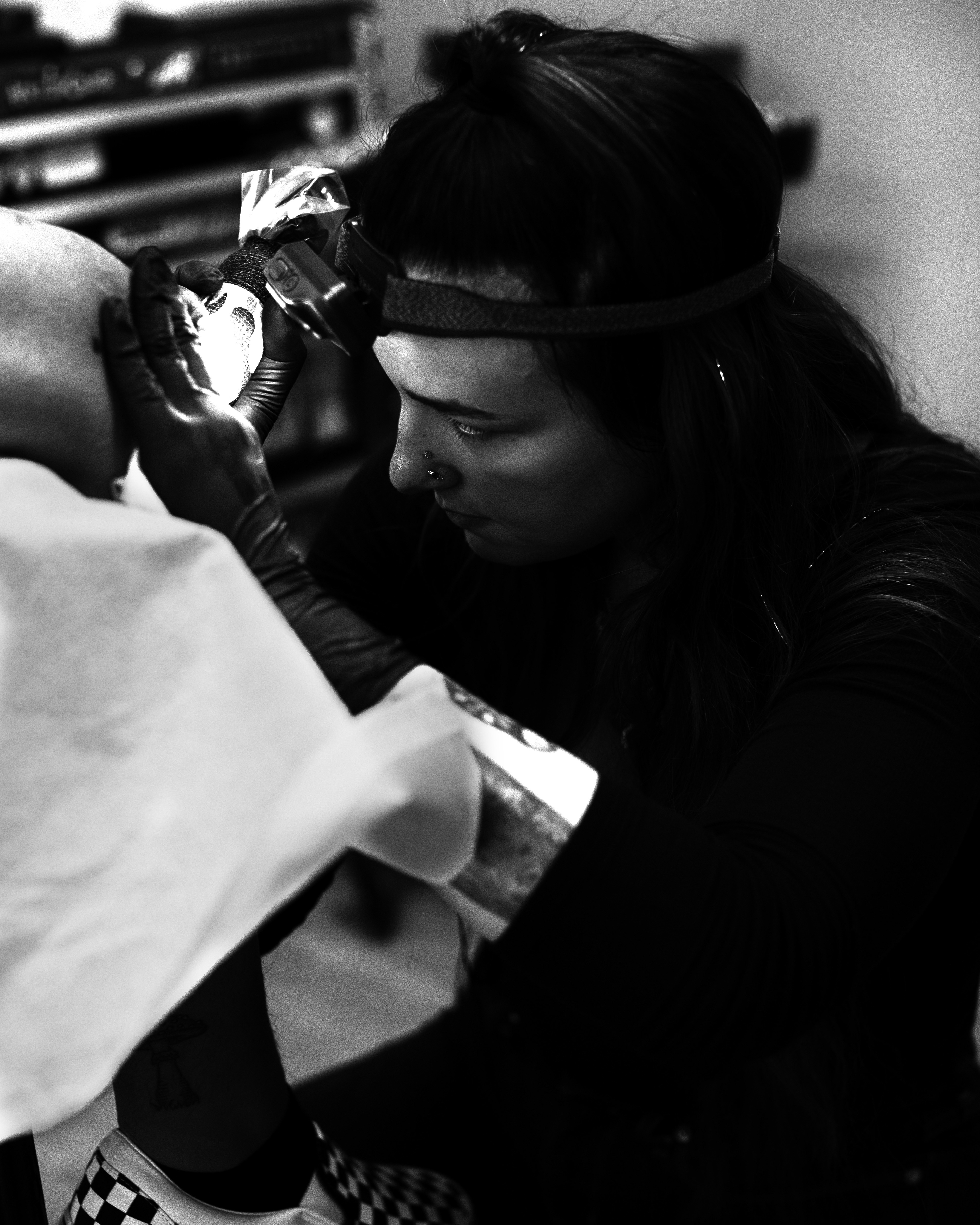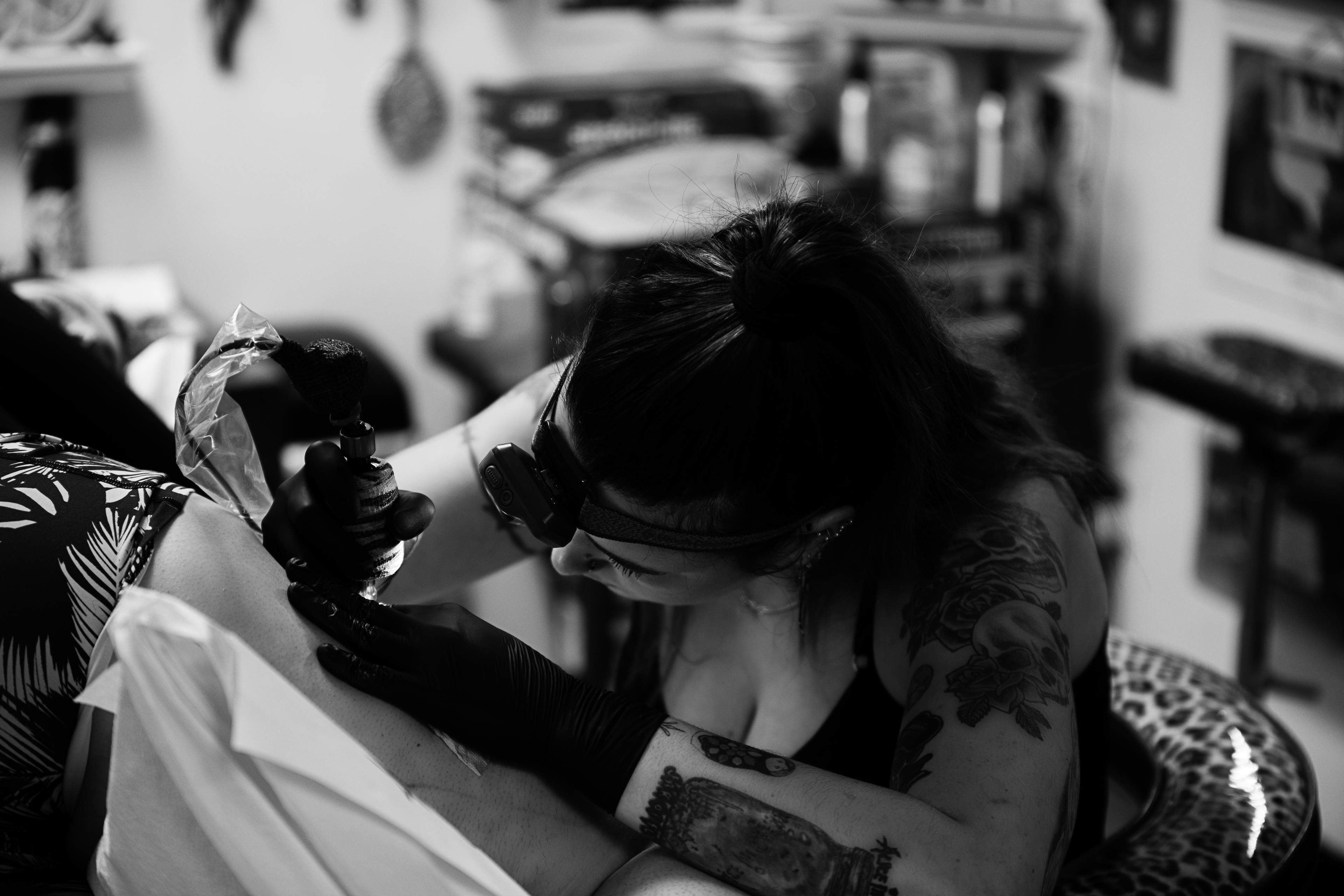 Mel has a knack for clean linework, and smooth gradient shading. Her work includes unique pops of white highlights, clever design choices, and intentional placement. She is proficient in working with color or black and gray, and can translate your tattoo dreams into a technically beautiful tattoo that looks - and heals great on any skin type. Medium to larger pieces are preferred for booking.